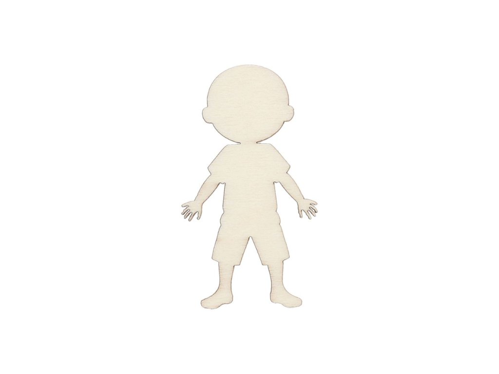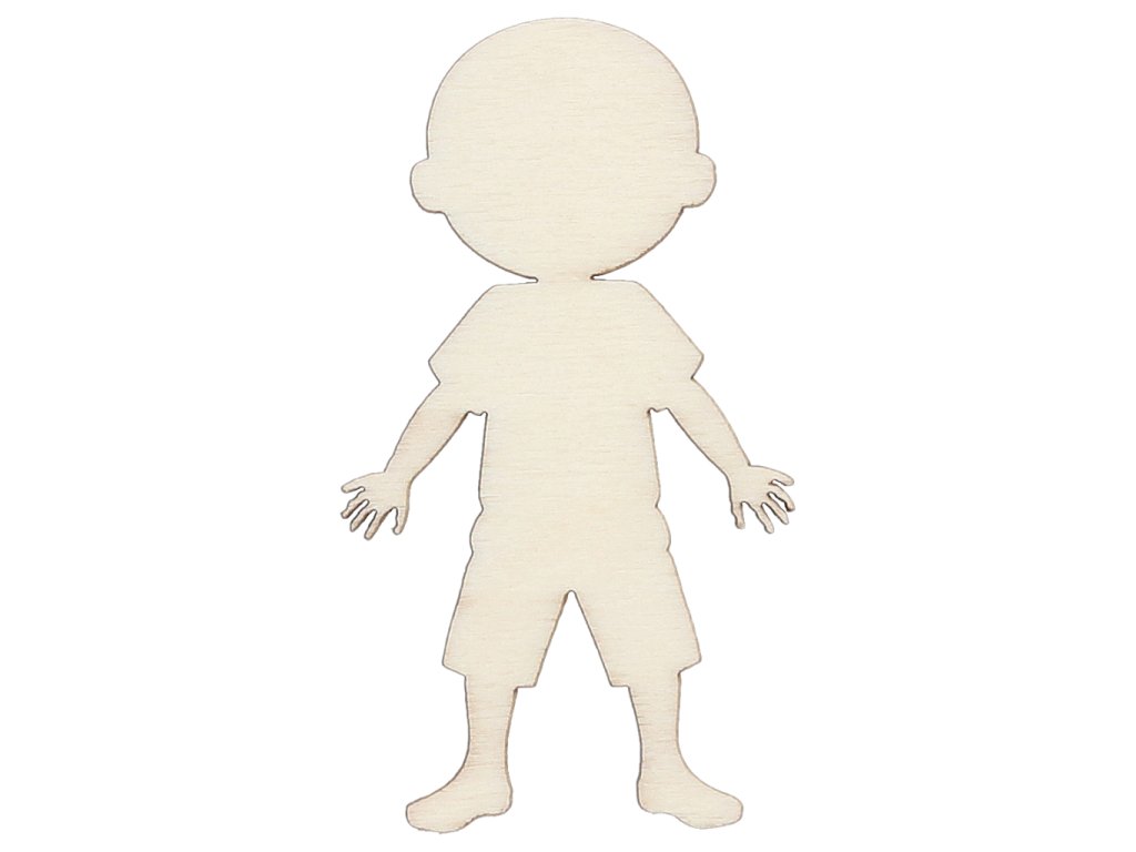 Postava chlapečka je vyřezaná z broušené topolové překližky nejvyšší kvality AB/AB o hloubce 3 mm v přírodním provedení. Výrobek řežeme na laseru, čelní strana ovšem zůstává čistá a je bez nevzhledných spálených míst. Drobné stopy po opálení se občas mohou vyskytnout na zadní straně výřezu.