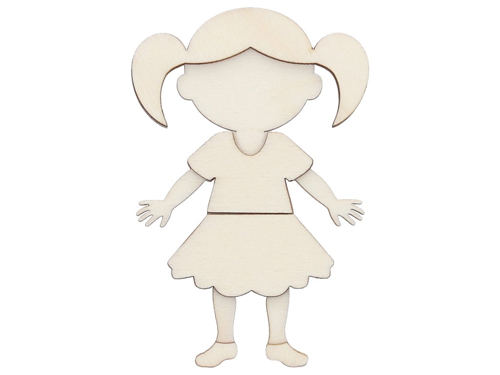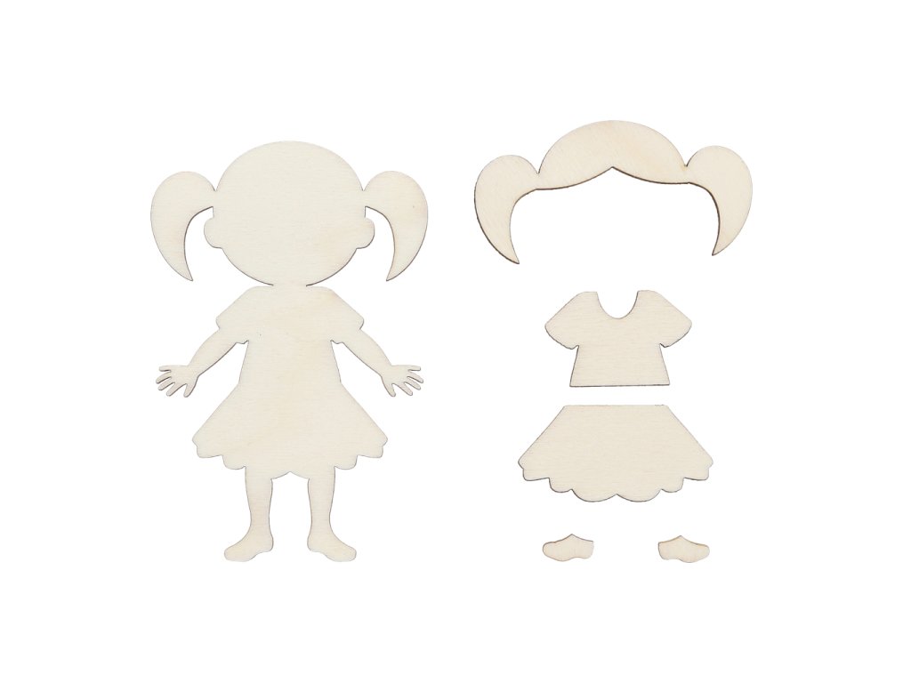 Postava holčičky včetně doplňků je vyřezaná z broušené topolové překližky nejvyšší kvality AB/AB o hloubce 3 mm v přírodním provedení. Výrobek řežeme na laseru, čelní strana ovšem zůstává čistá a je bez nevzhledných spálených míst. Drobné stopy po opálení se občas mohou vyskytnout na zadní straně výřezu.