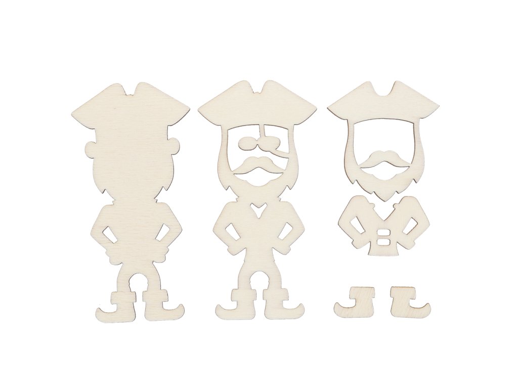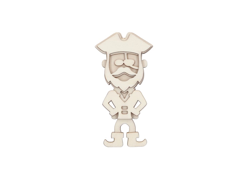 Postava piráta včetně doplňků je vyřezaná z broušené topolové překližky nejvyšší kvality AB/AB o hloubce 3 mm v přírodním provedení. Výrobek řežeme na laseru, čelní strana ovšem zůstává čistá a je bez nevzhledných spálených míst. Drobné stopy po opálení se občas mohou vyskytnout na zadní straně výřezu.