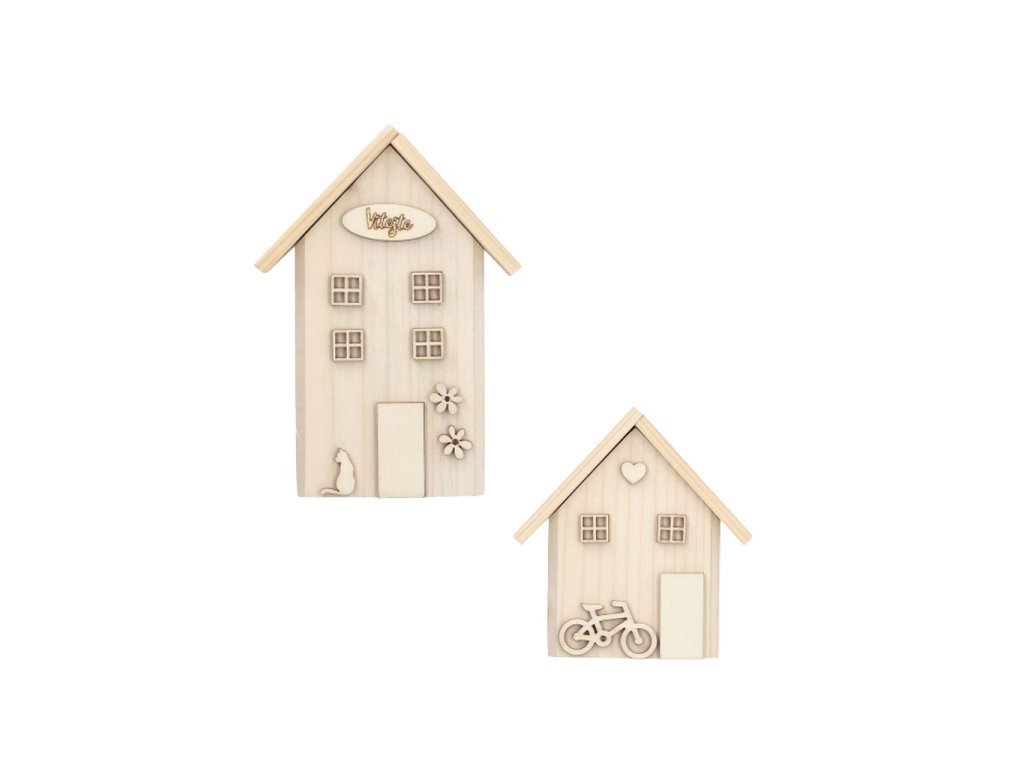 Každý z domečků stojí samostatně a nabízí jiný příběh – jeden s dvířky, okýnky, sedící kočkou a květinami, zakončený nápisem „vítejte“. Druhý domeček zdobí kolo u vchodu a srdíčko ve štítu. Celá sada je ideální volbou pro začátečníky nebo jako drobný dárek, který zahřeje u srdce.